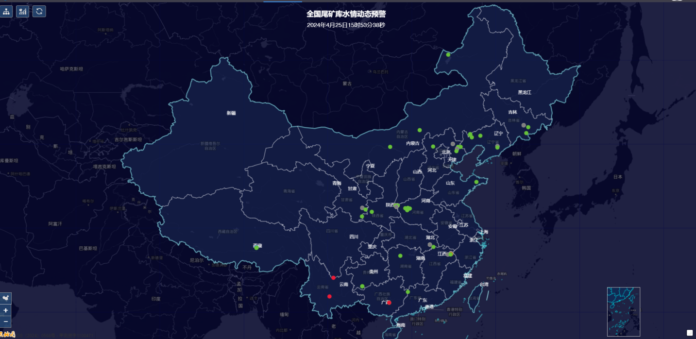 尾矿库智能监测与水情预警系统已经应用部署至江西铜业德兴铜矿4号尾矿库、中国黄金下属37家企业的43座尾矿库、西藏巨龙铜业甲玛沟尾矿库、四川凉山绿房箐沟尾矿库等百余座尾矿库,范围上覆盖河北、新疆、西藏、安徽、江西等15个省(自治区/直辖市),产生直接/间接经济效益超10亿元,社会效益显著。