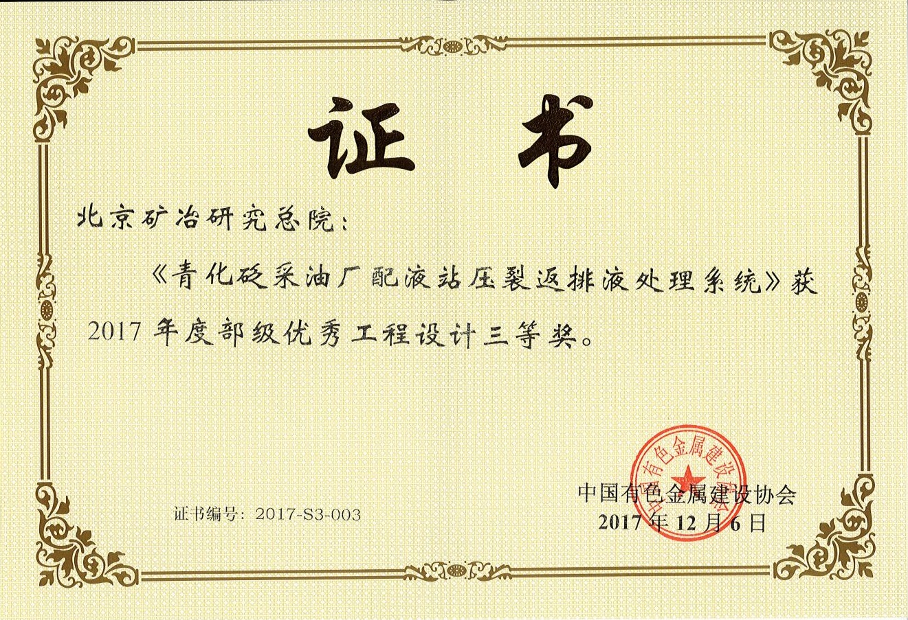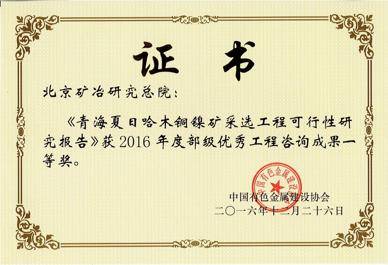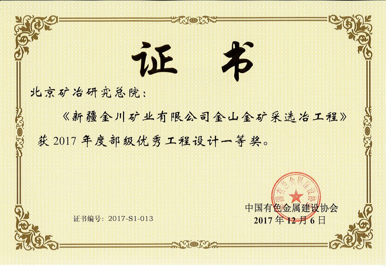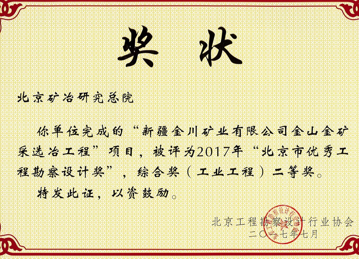 新疆金川矿业有限公司金山金矿采选冶工程——2017北勘设计奖