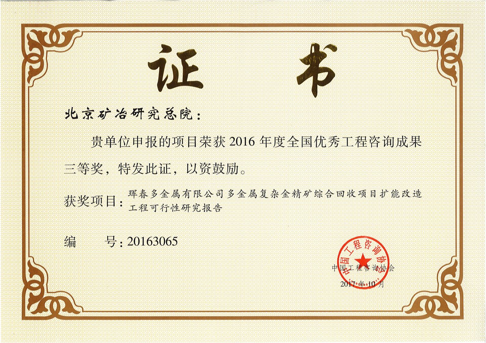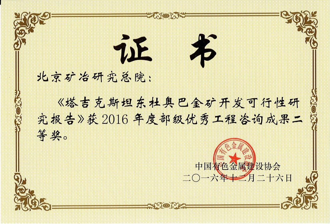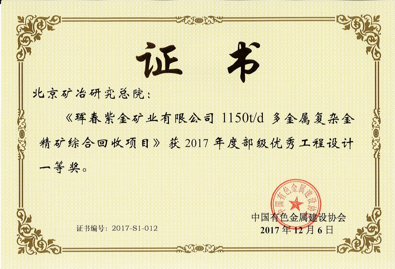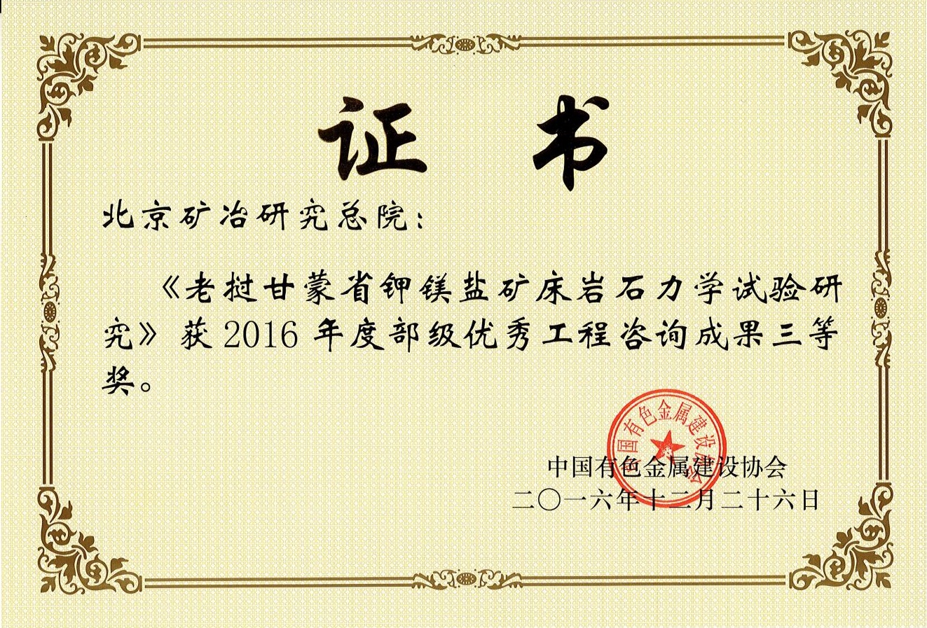 新疆金川矿业有限公司金山金矿采选冶工程——2017北勘设计奖