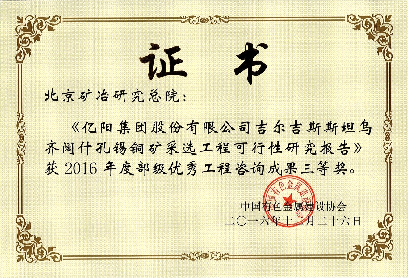 亿阳集团股份有限公司吉尔吉斯斯坦特鲁达沃耶锡铜矿采选工程可行性研究报告