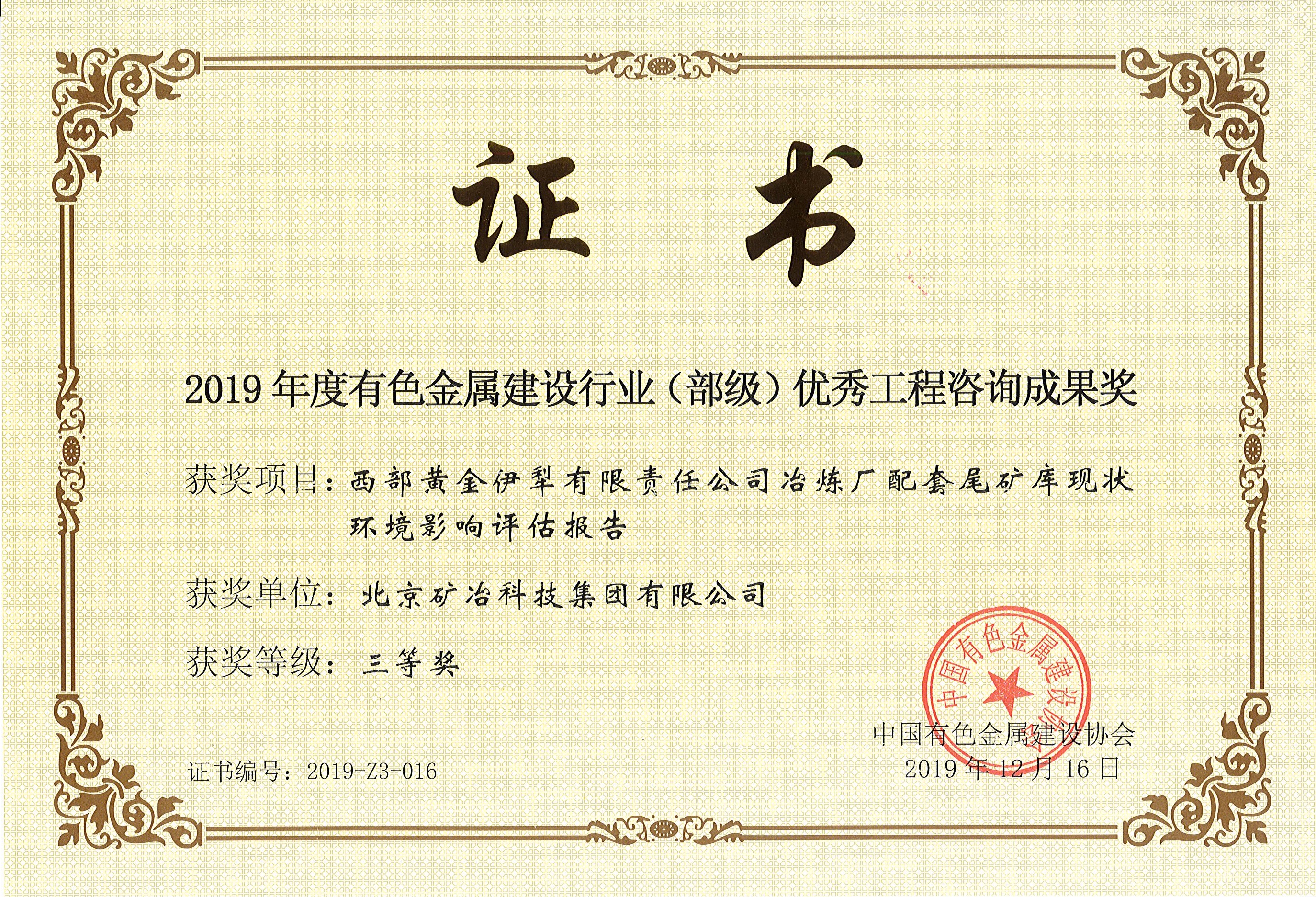 西部黄金伊犁有限责任公司冶炼厂配套尾矿库现状环境影响评估报告 三等
